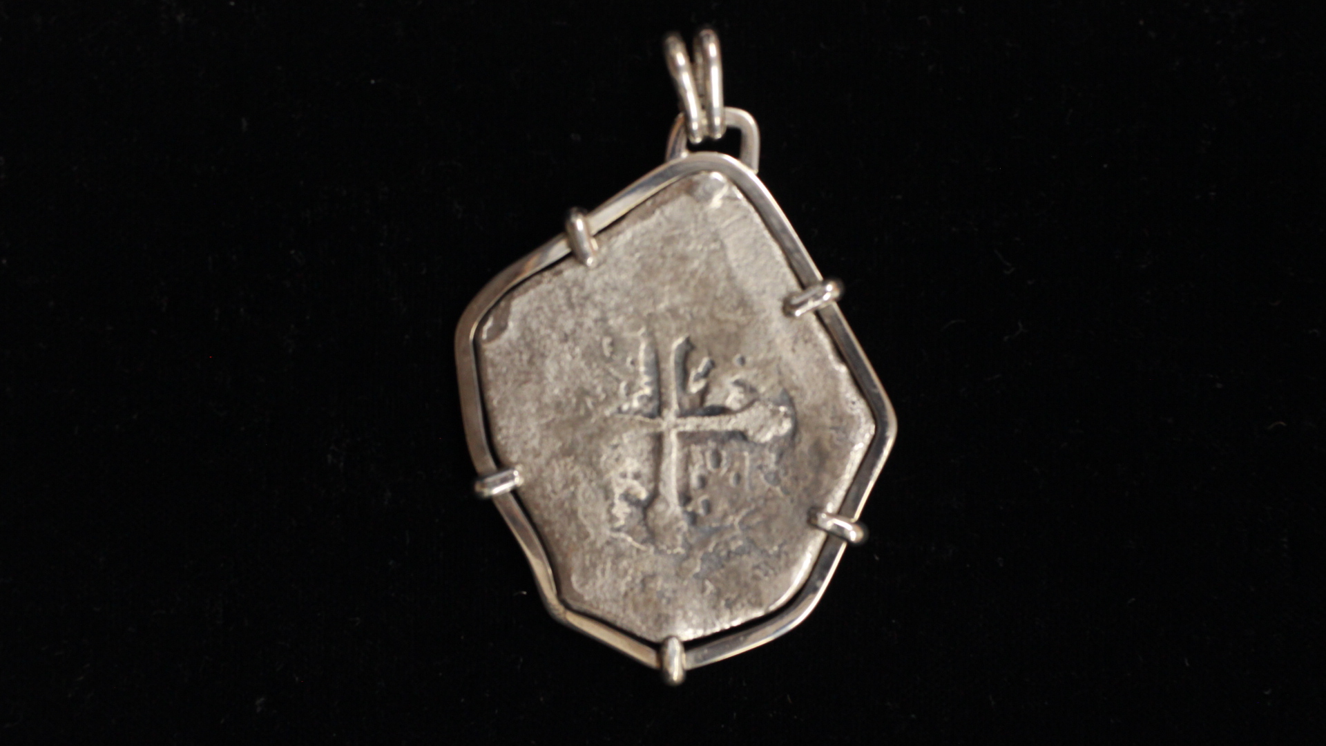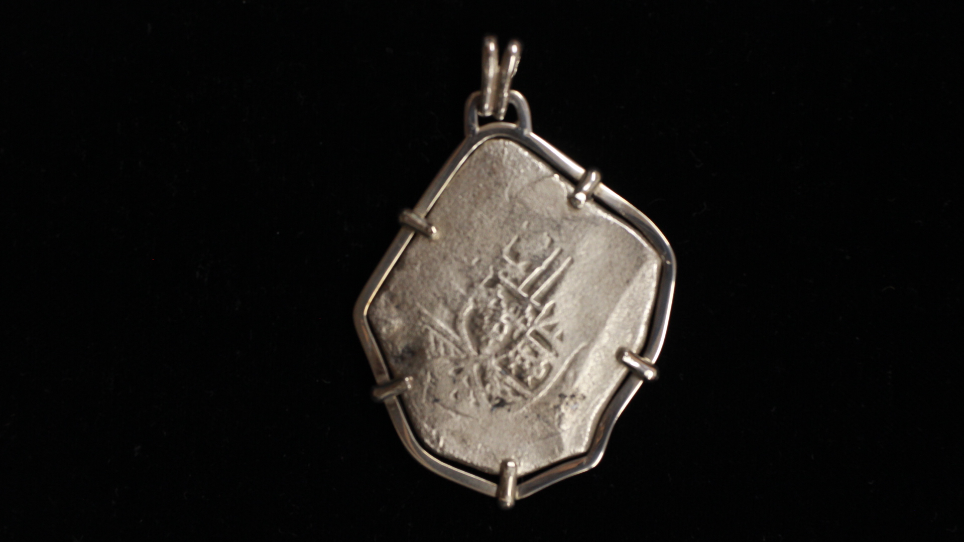 Large mounted 8 reales from the 1715 fleet mounted in Sterling silver Very visible piece of history