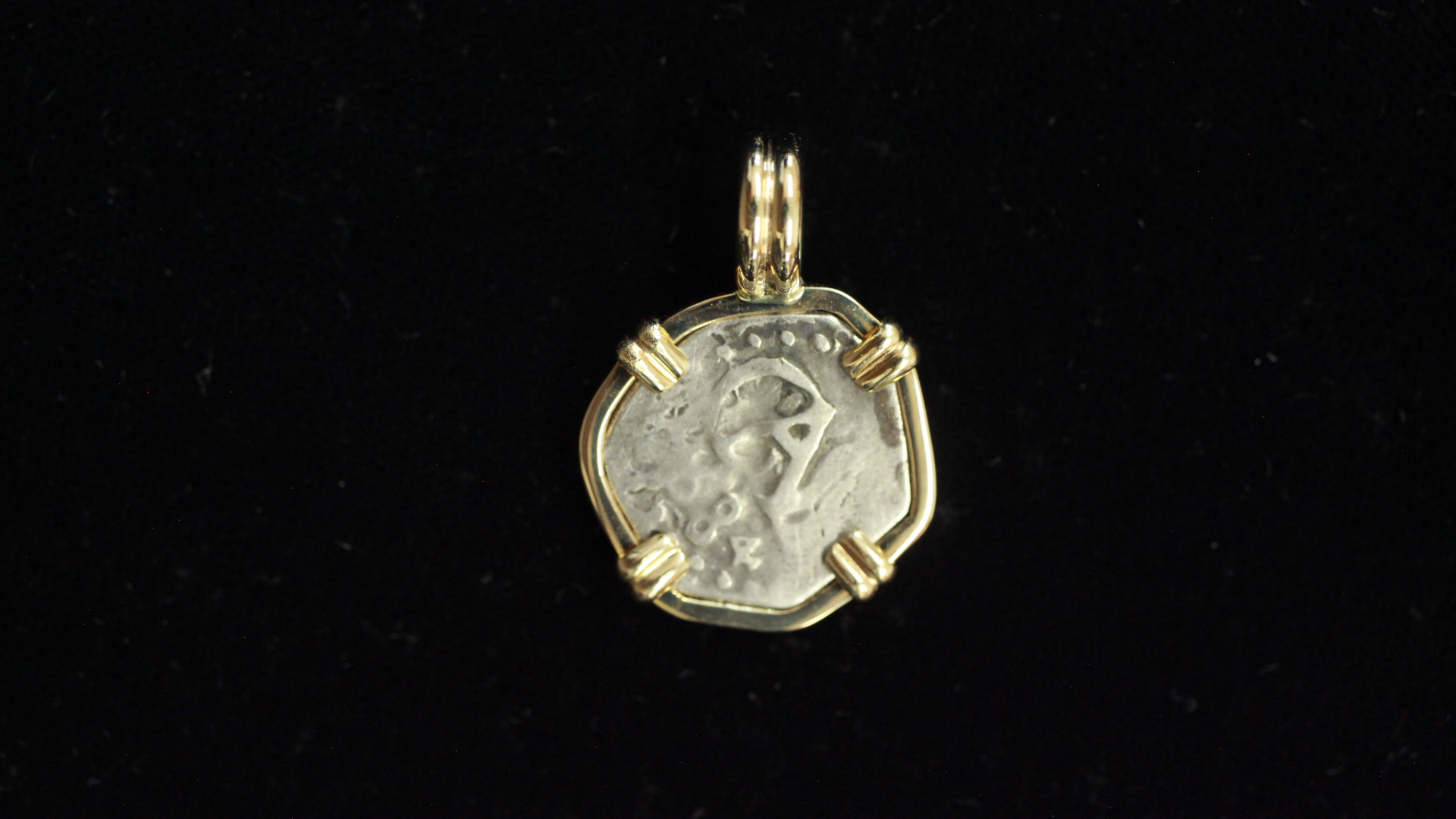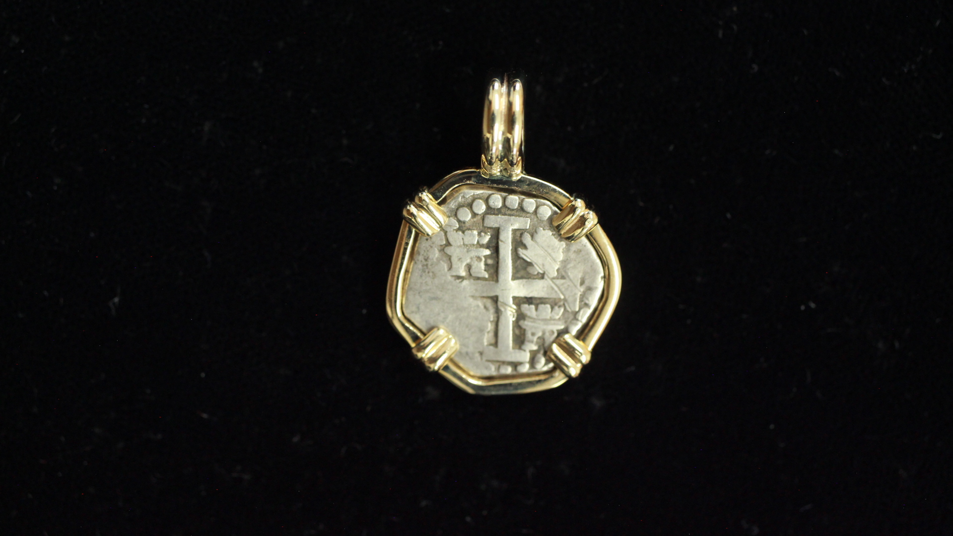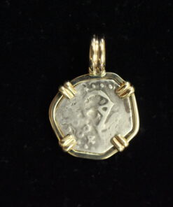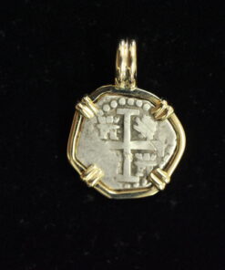 Special Half real salvaged from the 1715 fleet and mounted in 14kt.Gold Dated 1684