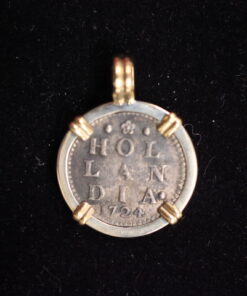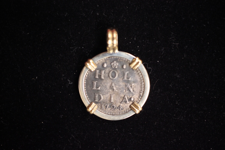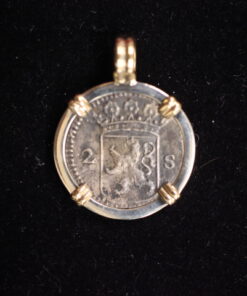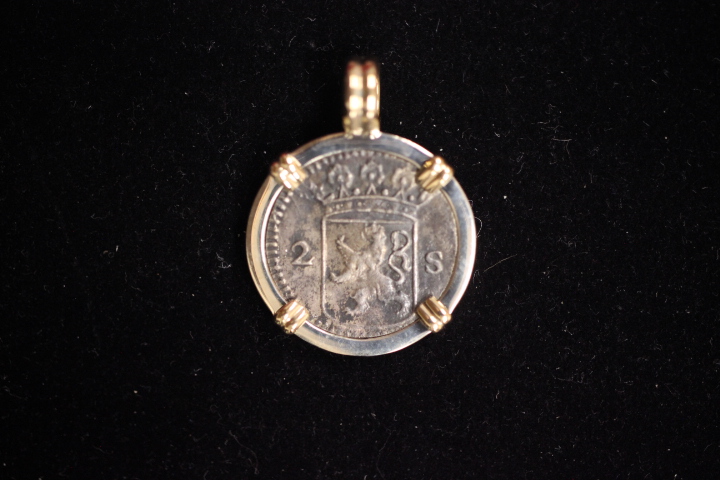 Nice 2 Stuiver minted in the Netherlands and salvaged from the Akerandam shipwreck Mounted in 14kt Gold