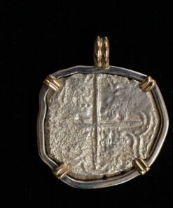 Atocha 4 reales mounted in Sterling Silver with 14kt gold prongs. 96A-15788-1