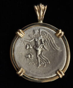 Beautiful Greek coin with Head of Athena facing right and the reverse with Helmeted Nike holding wreath Mounted in 14kt. Gold