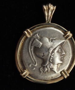 Beautiful Greek coin with Head of Athena facing right and the reverse with Helmeted Nike holding wreath Mounted in 14kt. Gold
