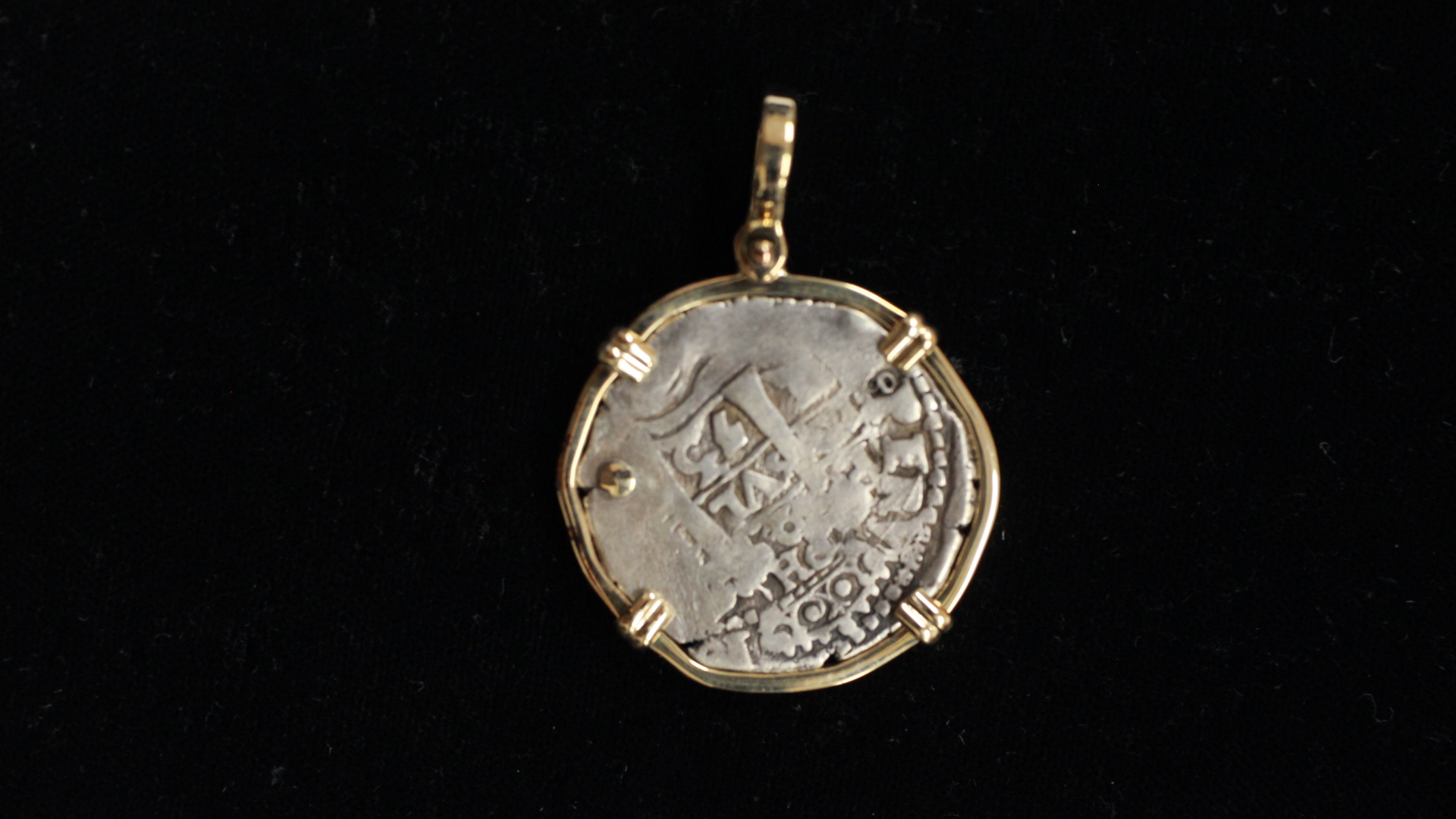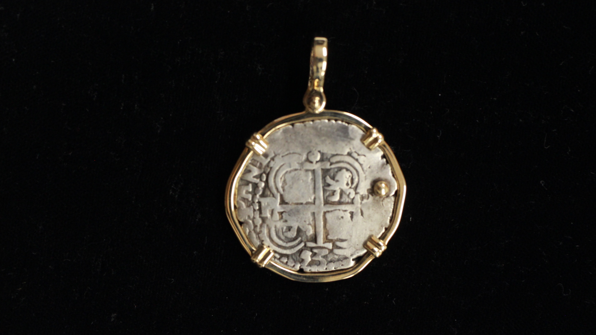 Nice Capitana shipwreck 2 reales mounted in 14kt Gold