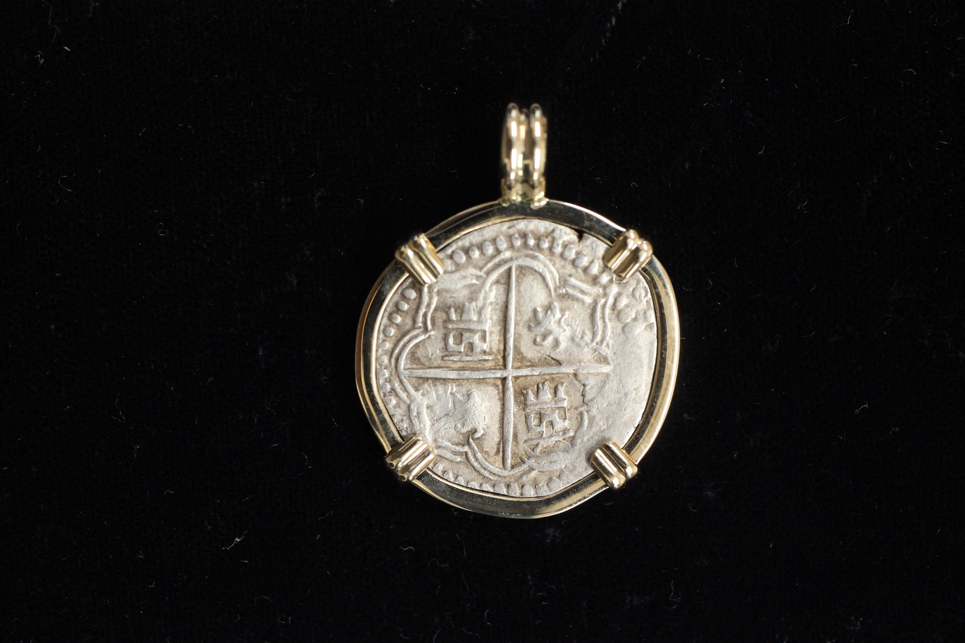 Beautiful one real mounted in 14kt. Gold salvaged from an unknown shipwreck